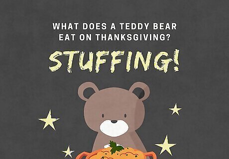 Throw out a teddy bear joke to make everyone smile. Teddy bears are cute, cuddly, and nostalgic, making them the perfect topic for your next joke. Here are some adorable options you can share with people of all ages: What do you call teddy bear police officers? The fuzz. What does a teddy bear eat on Thanksgiving? Stuffing! What did the teddy bear create in art class? A self paw-trait. What did the woman do at the teddy bear factory? Just stuff. Why didn’t the teddy bear have his homework? He fur-got to do it. What is a teddy bear’s favorite movie? The Fast and the Furry-ous. Why did the teddy bear say no to the ice cream? He was beyond stuffed. What do you get when you cross a teddy bear with a wild hog? A teddy boar. What do bears say when playing hide-and-seek? “Teddy or not, here I come!” What type of cereal does a polar bear always have for breakfast? Ice Krispies. What is a teddy bear’s favorite New Kids on the Block song? “The Right Stuff.” Did you hear about the teddy bear that got into a fight? He got the stuffing knocked out of him. Why did the stuffed-bear company lay off so many workers? There was a teddy decline in sales. What did the teddy bear say to motivate his friend? “Nothing is im-paw-sible if you set your mind to it.”