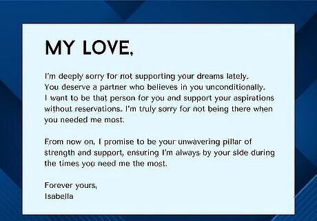 Not Being Supportive My love,I’m deeply sorry for not supporting your dreams lately. You deserve a partner who believes in you unconditionally. I want to be that person for you and support your aspirations without reservations. I’m truly sorry for not being there when you needed me most. From now on, I promise to be your unwavering pillar of strength and support, ensuring I’m always by your side during the times you need me the most.Forever yours,[Name]