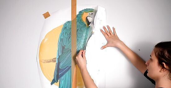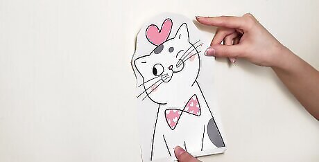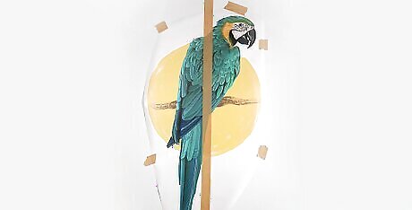 Use painter’s tape to secure your sticker where you want it. Press a few small pieces of painter’s tape around the perimeter of the sticker to hold it in place. Then, apply a long piece of tape vertically down the center of the sticker. This is called the “hinge.”