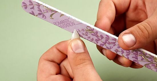 File the nails to a sharp point. Use a metal nail file to smooth out any rough edges and file each nail into a fang shape. To keep your workspace clean, place newspaper underneath the nails to catch any debris that may fall. As you’re filing, hold the nails against each other to ensure they’re the same shape. Alternatively, use sandpaper to file the nail into a sharp tooth shape.