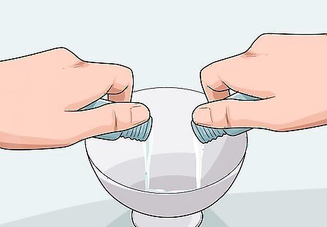 Make an alginate molding material and pour it into the mouth guard. Follow the instructions on your specific alginate powder, since the exact time and method can vary by brand. In most cases, you can combine one part alginate and one part water in a small dish, mixing the 2 ingredients together with any utensil. Once it’s combined, transfer the alginate mixture into your mouth guard. Alginate is a non-toxic molding powder made out of kelp. You can find it online or at your local art or dental supply store. Be sure to make your fangs as soon as the mold sets—alginate is delicate so it can crack within a few hours.