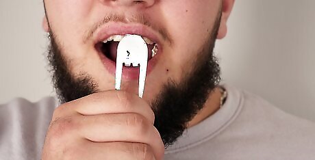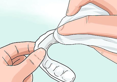 Create a mouth guard out of a paper cup. Use clean scissors to trim off the top portion of a paper cup, leaving the remaining base slightly larger than the height of your upper jaw. Then, cut off one side of the cup to make an opening that can slip into your mouth. Feel free to use (or purchase) a real mouth guard instead.