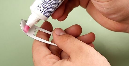 Stick the tooth on with a dab of denture adhesive cream. To help the adhesive stick better, dry your tooth and gum with a clean tissue. Add a small dot of denture adhesive cream on the back of the nail, and gently press it onto your tooth. Hold it in place for 10-15 seconds until the adhesive sets, then flash your best smile to look like a vampire! Avoid sleeping and eating with your fangs on—you don’t want to accidentally swallow them!