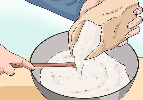 Make a positive of your teeth with a two-part plastic. In a glass bowl, combine 3 oz (90 ml) of liquid plastic with 3 oz (90 ml) of the other liquid plastic. Stir the ingredients together using a heavy-duty stirring rod or kitchen utensil. You can use any two-part cast plastic you like, but choose a non-toxic formula that dries hard and comes together quickly.