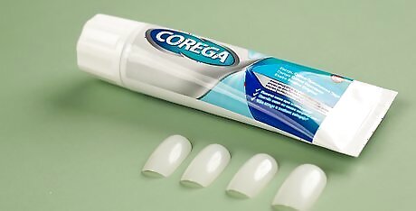 Buy fake nails and denture adhesive cream. To make your vampire fangs, purchase a set of white fake nails that matches the color of your teeth. You can find fake nails and denture adhesive cream at your local drug store, supermarket, or online. Many artificial nails come in a semi-sheer finish that looks similar to the tooth enamel, but you can also use a more opaque style. If you can’t find white fake nails, use a light nude or off-white color instead.