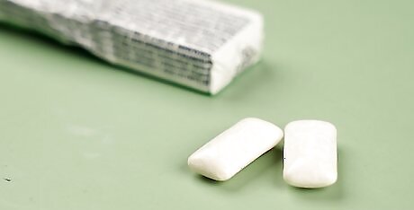 Create vampire fangs out of chewing gum. Chew 2 sticks of white chewing gum until they’re soft and sticky. With clean hands, divide the gum into 2 equal pieces, then wrap each piece around the front and back of your canine teeth. Use your nails to make sure the gum only covers your canines (and not your surrounding teeth), then shape the gum into a pointed “fang.” You might want to push your fang slightly forward so it doesn’t get crushed by your bottom teeth.
