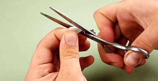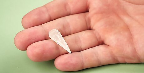 Cut the nails into a triangular shape. Use a pair of sharp scissors to trim each nail into a triangle. Hold the nail over your tooth to see how large the triangle should be, then keep cutting until you achieve your desired shape and size.