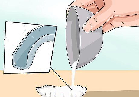 Pour the liquid plastic mixture into your negative mold. Immediately after the 2 liquid plastics are combined, pour the mixture into your alginate mold. Pour slowly and carefully to avoid trapping air bubbles in the cast, then follow the instructions of your product to let it dry. Within several minutes of being poured, the plastic will turn white and hot—do not touch it with your bare skin! After the plastic sets, wait an additional 10 minutes before removing it from the mold. This gives the inside plenty of time to dry, ensuring the plastic model of your teeth is solid.