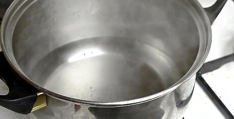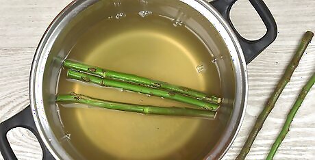 Boil about 2 cups (470 mL) of water, then reduce the heat to a simmer. Fill a pot with tap water and put it on your stove over high heat. Let the water heat up completely until it comes to a rolling boil. Then, turn the heat to low and let the water simmer. Alternatively, use purified or filtered water if you’re worried about any foreign substances in your tap water. Boiling the water kills bacteria that may interfere with your cuttings’ ability to grow roots.