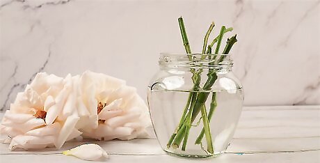 Transfer your cuttings to a rooting medium or water jar after dipping. Once your cuttings are dipped, they’re ready for planting. Add them to a small pot of rooting medium or light soil, or a jar of water for water propagation.