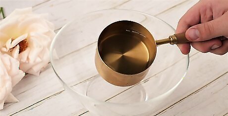 Stir in 2 US tbsp (30 mL) of pure or raw honey and let the solution cool. If possible, use organic, raw, or pure honey in place of regular supermarket honey, which typically has added sugar. Scoop the honey directly into the pot of simmering water and use a mixing spoon to stir it together. As soon as the honey dissolves completely, turn off the heat and let the pot cool to room temperature. Put a lid on the pot while it cools to prevent anything from contaminating the solution. Honey contains antibacterial, antiseptic, and antifungal properties and promotes healthy root growth.