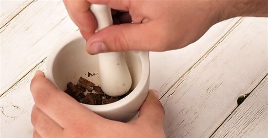 Grind fresh cinnamon sticks into a fine powder. Use a mortar and pestle to grind up whole cinnamon sticks. The exact amount depends on how many cuttings you’re planting—grind up enough cinnamon to evenly coat the bottom 1 cm (0.39 in) of each cutting (about ½ tsp (1.4 g) of cinnamon per cutting). If you use store bought cinnamon, make sure there are no added spices or other ingredients. Often, supermarket cinnamon has added sugar to make it taste sweeter. Cinnamon has antimicrobial properties that will protect your cuttings from bacteria and fungi, as well as other compounds that may help stimulate root growth.