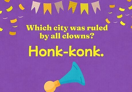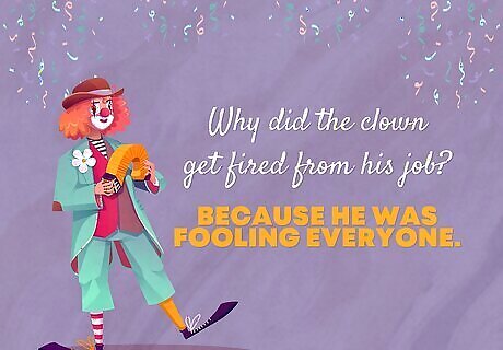 Break out a clown joke to brighten anyone’s day. Everyone’s familiar with clowns, making them the perfect punchline for your next joke. Whether you’re showing up as a clown to a kid’s birthday party or simply chatting with friends, here are some funny jokes to get the giggles going: Where do clowns go to get married? Clown Hall. You’re going to clown college? You can’t be serious. What’s a rodeo clown’s favorite type of bar? A honky-tonk. Where did the clown go after he retired? Down Old Clown Road. How do clowns graduate from clown college? With ed-joke-ation. What kind of illness did the clown come down with? Juggle fever. Why is Frankenstein such a good rodeo clown? He can put you in stitches. What’s the worst part about playing tag with a clown? When the clown is It. Why did the clown get fired from his job? Because he was fooling everyone. What should you do if you’re attacked by a mob of clowns? Go for the juggler! Why was the clown's education a joke? Because he was juggling with his future. Did you hear about the really dramatic circus clown? His act was always in tents! Why don't vampires suck the blood of clowns? Because they have a funny aftertaste. Why did the electrical engineer become a clown? He couldn't get enough of the circuits! Why did the clown feel sad looking at the balloon? Because of inflation, he couldn’t buy it. How do you cheer up a sad clown? Take him to an orthopedic surgeon to fix his funny bone. Why was the lopsided clown looking for another piece of cheese? He only had one stilt-on! Did you hear about the clown who got fired from the circus? He’s suing for funfair dismissal. Why was the clown’s mortgage turned down? Because he could not afford the clown payments! Did you hear about the clown who ran away with the circus? The ringmaster made him bring it back!