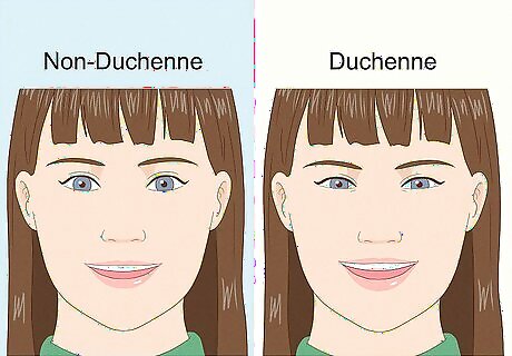 Duchenne smile The Duchenne smile is also known as the genuine smile because people make it in response to genuine happiness and pleasure. According to Marono, the Duchenne smile is “where the cheeks…raise and you can see the muscles at the bottom of the eyes engage” (which looks like wrinkles or crows' feet). The smile itself is typically wide with the teeth showing, and the face seems to light up. Marono explains that the genuine smile isn’t so much about the mouth as “some people smile big [and] some people smile small,” which just comes down to “their facial physiology or…preference.” She says the defining features are if “the muscles under the eyes and…the cheeks [are] involved.” Genuine smiles can also make people feel more positive, trustworthy, and friendly. Meet the wikiHow Experts Abbie Marono is a language and nonverbal communication expert. John Keegan is a dating coach, motivational speaker, and owner of The Awakened Lifestyle. He has over 15 years of experience helping people find love.