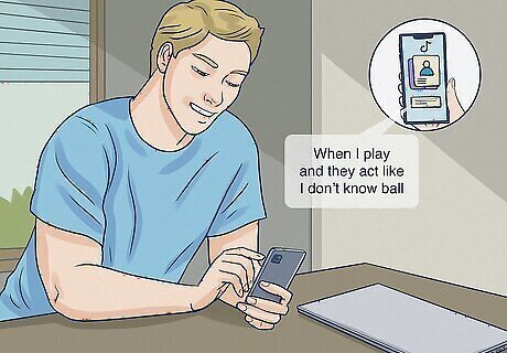 Caption the clips and post. Use the text feature in the TikTok editor to add a caption to your first photo. Caption the first photo “When I [do something] and they act like I don’t know ball” and make sure to replace the placeholder text with what you want to show off. Then, caption your subsequent clips with “I know ball” or “trust me, I know ball,” breaking the words up between images. Once you’re done, click post!
