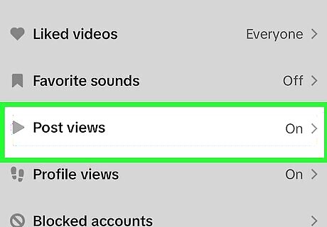 You can enable or disable Post View History in the Settings menu. You can only turn Post View History on or off if you are 16 or older and have less than 5000 followers. If you are eligible, you can use the following steps to enable or disable Post View History: Open the TikTok app and tap Profile in the lower-right corner. Tap the icon with three lines (☰) in the upper-right corner. Tap Settings and privacy. Tap Privacy. Tap Post view history (if you have this feature). Tap the toggle switch to turn Post view history on or off.