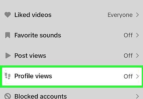 You can enable or disable Profile View History in the Settings menu. If you enable Profile View History, you can view who views your TikTok profile, and others will see when you've viewed theirs. If you are eligible, you can use the following steps to enable or disable Profile View History: Open the TikTok app and tap Profile in the lower-right corner. Tap the icon with three lines (☰) in the upper-right corner. Tap Settings and privacy. Tap Privacy. Tap Profile views. Tap the toggle switch to turn Profile views on or off.