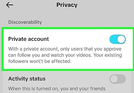 You can make your profile private to limit who can watch your videos. When you set your account to private, you must approve anyone who decides to follow you. Only people who follow you can view your videos. Use the following steps to make your TikTok private: Open the TikTok app and tap Profile in the lower-right corner. Tap the icon with three lines (☰) in the upper-right corner. Tap Settings and privacy. Tap Privacy. Tap the toggle switch next to “Private account."