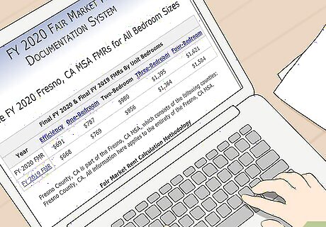 Establish a fair market rent (FMR) for the unit. Each local PHA determines a payment standard for your area that is between 90% and 110% of the FMR. The FMRs are calculated and published by the US Department of Housing and Urban Development (HUD) every year. To find the FMR for the area where your rental unit is located, go to https://www.huduser.gov/portal/datasets/fmr.html. If your rental unit is located in a metropolitan area, a distinct small area FMR (SAFMR) may apply. SAFMR's calculate distinct FMRs for ZIP codes within metropolitan areas, where rental rates may vary dramatically. Go to https://www.huduser.gov/portal/datasets/fmr/smallarea/index.html to look up the SAFMR. If you disagree with the rent assigned to your rental unit by the PHA, you can fill out an application for a rent increase. Tip: The rent for your unit might be adjusted up or down, relative to the FMR, depending on the age, condition, and location of the property. Talk to PHA staff if you have questions about what to charge in rent for your particular property.