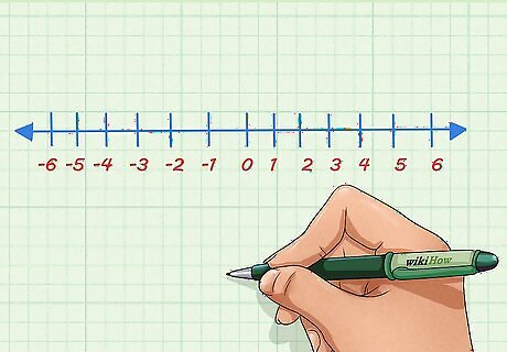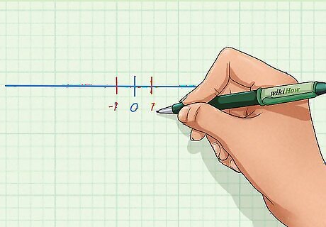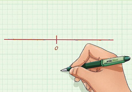 Draw a basic number line. Imagine or draw a straight, flat line. Make a mark near the middle of your line. Write a 0 or zero next to this mark. Your math book might call this point the origin, since it's where numbers originate, or start from.