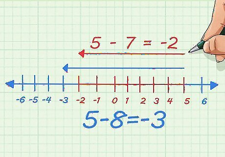 Decrease the amount you're subtracting and see what happens. Suppose we decrease the amount we're decreasing by one less, or in other words subtract 7 instead of 8. Now we move one less space to the left on the number line. In written terms, we started with5 - 8 = -3 Now we'll only be moving 7 left, so we have5 - 7 = -2