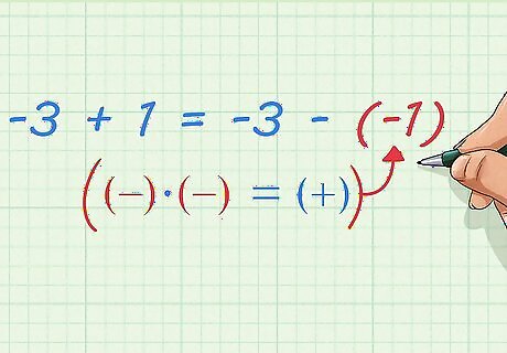Write subtraction of negative numbers as addition. Notice what's happened at the end of this - we've proved that:-3 + 1 = -3 - (-1) We can express this as a simple, more general rule for writing math:first number plus a second number = first number minus (negative second number) Or, in more simple terms like you've probably heard in a math class:Change two minuses to a plus.