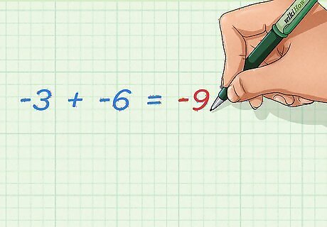 Learn how to add two negative integers. Two negative numbers added together will always make a number more negative. There is nothing positive being added, so you'll always end up with something further from 0. Finding the answer is simple: -3 + -6 = -9 -15 + -5 = -20 Do you see the pattern? All you need to do is add the numbers as though they were positive and add a negative sign. -4 + -3 = -(4 + 3) = -7