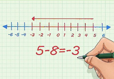 Understand how subtraction and negative numbers work on a number line. On a number line, subtracting a negative is a decrease in the length of a decrease. Let's start with 5 - 8. On a number line, we start with our pointer at 5, decrease by 8, and arrive with our pointer at -3.