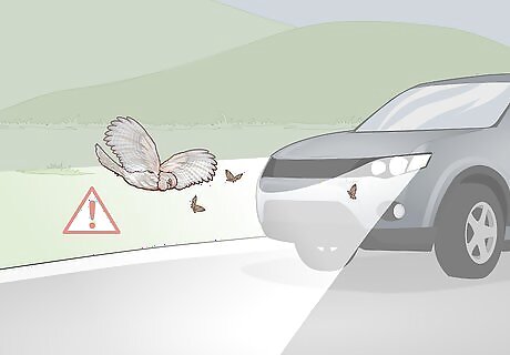 Drive carefully at night to avoid hitting a tawny frogmouth. These birds love to eat moths. Since they only hunt at night, they often swoop down to grab moths that swarm around car headlights. If you know you live in an area that is populated with tawny frogmouths, drive slowly and be observant at night so that you don’t accidentally hit and injure one. If you do accidentally hit one, call a bird sanctuary near you for assistance.
