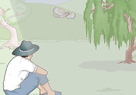 Be silent if you hear a tawny frogmouth's call so you don't spook it. These birds are very skittish and will probably fly away if you make any loud sounds. If you suspect that you are near a tawny frogmouth, stay still and make as little noise as possible. This will relay to them that you and your yard are not a threat. The less threatened they feel, the more likely they are to return to your yard.