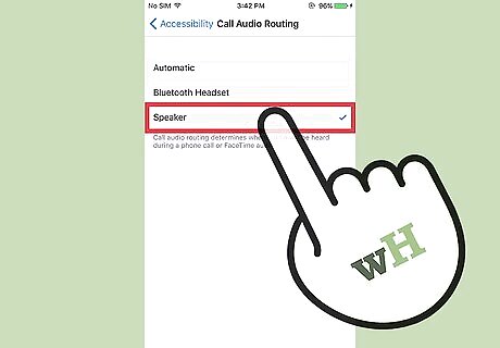 Select Speaker. You will see a checkmark appear next to the word "Speaker." Your phone will now be set to speaker mode in every phone and FaceTime call you make. You will now see the speaker button highlighted every time you start a call. To exit speaker mode, tap on the button while in a call.