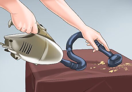Try to get in the habit of eating in the kitchen or dining room. Food leads trails of dirt which may be attractive to black widows. After you eat, scrub the table with a soapy sponge or rag. Vacuum crumbs on the carpet or sweep them up.