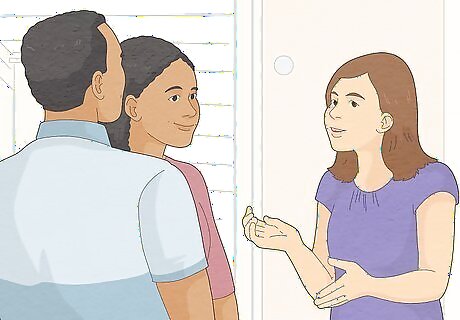 Don’t open the door for strangers. Keep the front door shut and locked for the entire time you’re babysitting. Only open the door for someone you’re expecting. If someone you don’t know comes over, tell them they can come back later. Don’t tell strangers you’re the babysitter. Just say that it isn’t a good time. You could say, “Right now’s not a good time for us. You can come back tomorrow if this is important.”