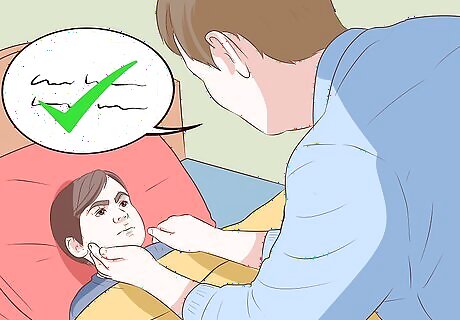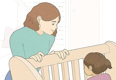 Find out the bedtime routine. Give a warning before sending kids to bed. You may want to let them stay up 10-15 minutes past what their parents allow—just be sure they know it's a special treat. Other than that, be firm with when it's time to go to sleep. Be prepared for some whining. For older kids, you need to know the difference between real problems and stall tactics. For babies, you have to be sure the sleep environment is safe. End-of-day routines help kids wind down and signal their bodies that it's time for sleep. Ask parents what they usually do before bedtime. Maybe they have rules like no TV or computer time for an hour before bedtime. If they typically read, talk quietly, or listen to music before bed, follow the same routine. Go through the basics. Take a child to the bathroom (or put on a nighttime diaper). Help the child brush their teeth. Find out from parents what else is necessary before the kid hops under the covers. Always put babies (and children) to bed in their designated sleep space (be it a bed, crib, bassinet, etc.) This is especially important for babies, who can be injured if their sleep space isn't how it should be. Remove padding, pillows, stuffed animals, and other items from the crib, if these items are present. Be sure to lay babies on their back when putting them to sleep. It helps reduce the risk of suffocation. Give the child any comfort items, such as pacifiers, stuffed animals, or blankets, that they usually sleep with. Do not give stuffed animals and similar to babies. If a child calls you/wakes up, wait a minute before going in. They may fall back asleep on their own. If a baby can't go back to sleep, stroke them gently on the arms or belly. If the baby uses a pacifier, that can also help. Find out what calming tactics the parents use.