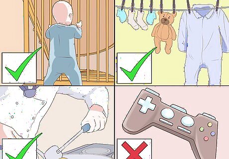 Play with the kids. Both you and the kids will have a better experience if you play. The sky’s the limit when it comes to activities. You can keep it simple and play with toys, games, or puzzles. Or, get creative and make a craft, put on a play, or pretend to be pirates. Just have fun! Always ask the kids what they want to do. You’ll have a much easier time if you play with their favorite toys or play games that they like.