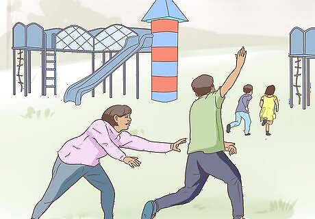 Take them to a playground if the parents say it's okay. Simple games like tag and hide and seek get kids active and help them stay fit. Dancing with them is great exercise, too! If you can’t leave the property, play outside in the yard, if possible.