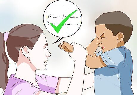Be kind to the kids, even if they misbehave. One of the hardest parts of babysitting is dealing with a child who’s acting out. Fortunately, this won’t happen very often. Dealing with these kinds of problems can be really stressful, but try to stay calm because it’s super easy to hurt a child’s feelings. If you do have a kid misbehave, stay calm and gently remind them what they’re supposed to do. You might say, “Your mom said we can’t throw balls in the house, remember? Let’s play a different game.” You could also say, “It’s not okay to hit. Why don’t you say you’re sorry so we can go play some more?” If the behavior continues, you may have to contact their parent.