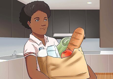 Start buying more groceries. You were probably used to having free groceries at your parents’ house and going out to eat otherwise. This is an expensive and generally unhealthy way to live. Force yourself to buy groceries, and plan on cooking them at home to save money. Buy fresh fruits and vegetables. Starting adulthood with a healthy diet is important to form good habits and a good relationship with food.
