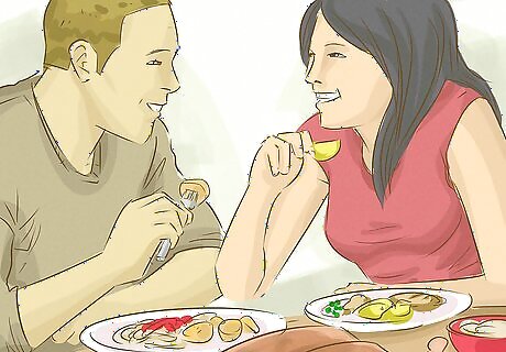 Have lunch with your partner. If you and your significant other work within a few miles of one another, make plans to have lunch together once a week. It's all about finding creative ways to spend time together. If you make a schedule of how you use your time, you will probably realize you have pockets of time throughout the day that are ineffectively utilized, such as lunch hours. If you are finding yourself never seeing your family, use these stretches of time to fit in family activities!