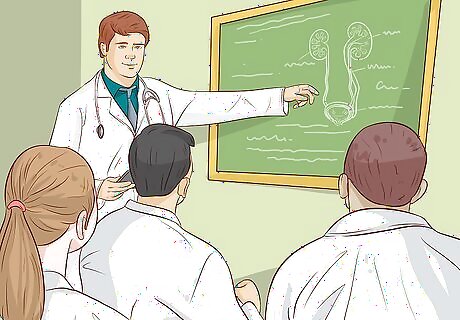 Attend medical school for 4 years and specialize in urology. Medical school is quite intensive, and takes at least 4 years to complete. Study anatomy, human biology, chemistry, and pathology. You will learn how to talk to patients, run diagnostic tests, and treat patients ethically. The first few years will be mainly classroom and laboratory work, but the last couple of years will involve more hands-on training. Medical school is tough at first. Be prepared to put in a lot of hours studying and memorizing information. With enough hard work and persistence, you will soon develop a rhythm in your study habits. In your third year of medical school, choose urology as your specialty. Begin taking specialized courses on urological subjects, like kidney health, urinary tract diseases, and complications from aging. Medical school is different in every country. For example, you will need 6 years of medical school to become a urologist in India. Depending on where you live, you likely need at least 3 months of surgical training and 6 months of dedicated research on top of your specialist classes to specialize in urology.