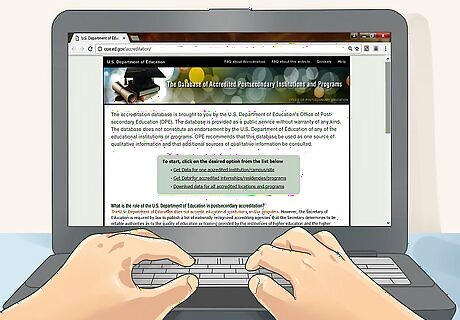 Look for a licensed, accredited school. There are many schools that offer ASE certification programs. The first step toward narrowing the list of schools down is to identify which programs near you or online are accredited. Most schools will provide that information on their webpage, or you can contact the admissions department to ask about accreditation. You can also search for the schools near you on websites like this: http://ope.ed.gov/accreditation/ Make a list of the local or online programs you think you may want to apply to.