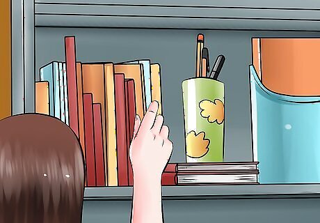 Support upright Bibles. If you plan to stand your Bible on a bookshelf, make sure that both sides are supported by other books or bookends. If you store the book so that it lies flat on its back cover, no extra support should be needed.