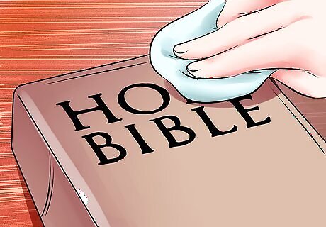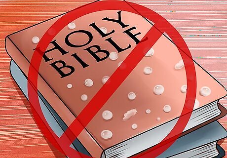 Avoid moisture. Keep the Bible as dry as possible, especially if the cover is made from authentic leather. Store it in an area of low humidity. Excessive moisture can cause leather and faux leather covers to dry out. Humidity or dampness can also cause mold to develop. Contact with water will cause the pages to ripple and warp.