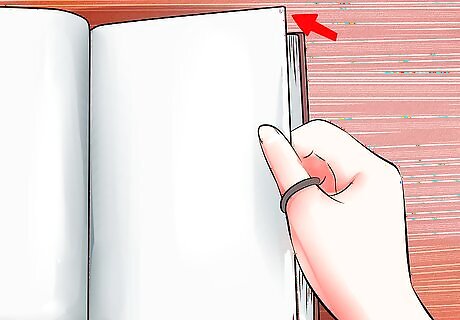 Place the spine on a hard surface. Hold the closed Bible with one hand. Rest the spine on a table or counter. Throughout the entire process, you'll need to use one hand to hold the upright, closed portion of the Bible in place. You'll need to use your other hand to open and crease each section.