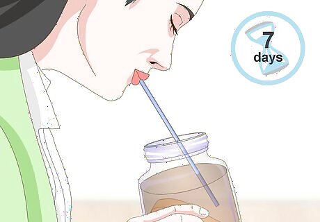 Taste your tea after 7 days to see if it’s ready to be consumed. Carefully sip the tea with a straw in order to taste it. If the taste of the kombucha is to your liking, remove the jar from the fermenting spot. If it needs more time to ferment, put it back and test it again after a few days. The longer kombucha ferments, the less sweet and tangier it will taste.