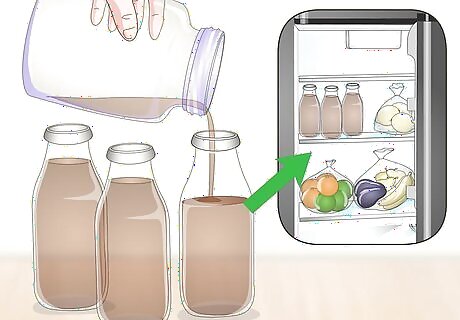 Bottle your kombucha and store it in the refrigerator. Use a funnel to pour the kombucha from the glass jar into smaller glass bottles. Add flavoring to each bottle before pouring in the kombucha to make flavored kombucha. Your kombucha will never “go bad” in the refrigerator. However, it may eventually become too sour to drink. How long this takes varies between different brews. Some things you can add to your kombucha to flavor it include fresh fruit, fruit juice, fruit syrups, and herbs.