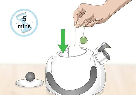 Remove the water from heat, then steep your tea bags in it for 5 minutes. Take the kettle off of heat first, since you don’t need the water to be boiling in order to steep the tea bags. After 5 minutes, take out the tea bags and set them aside. Avoid over-steeping the tea, since this can result in your kombucha being overly bitter.