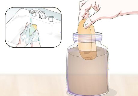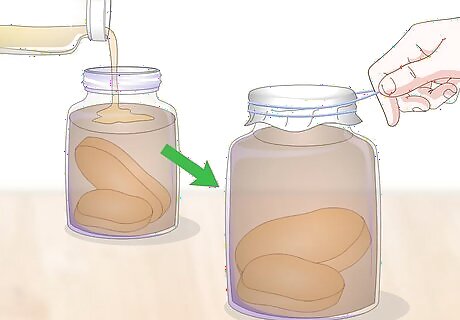 Set aside the SCOBY if you want to use it again. Take the SCOBY out of your glass jar and put it in its own separate jar. Pour some kombucha in the jar with it in order to keep it alive. You can also use a store-bought “SCOBY Hotel” to store your leftover SCOBY after you’re done brewing kombucha.