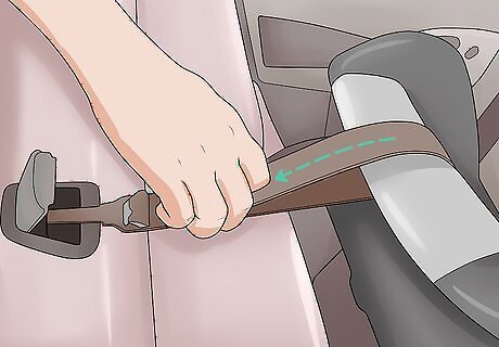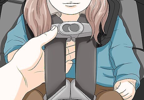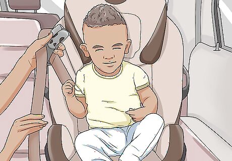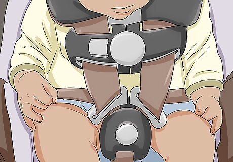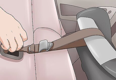 Test that the buckled straps are neither too tight nor “pinchable” loose. Once you’ve buckled your child in, manually tighten the straps—usually by pulling on the strap at the front of the seat, between the child’s legs. You should be able to slide 2 of your fingers between each strap and the child’s body, but not be able to pinch the strap between your fingers. If you’ve over-tightened the straps and need to loosen them, there’s usually a lever or button near the tightening strap at the front of the seat. Refer to your user’s manual for specific instructions.