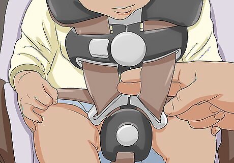 Make sure a baby’s head remains centered and reclined. Infants in particular have weaker necks and can have trouble keeping their heads from falling forward or to the side. Most modern seat bases have recline adjustments, so recline the seat—according to the product instructions—to help your child keep their head upright. However, don’t recline the seat further than is recommended in the manual for your child, based on their age and/or size. If your child’s head droops to the side, try rolling up small towels (or burp cloths or cloth diapers) to tuck between their head and the side protection of the seat. Check frequently to make sure the towels don’t unroll and potentially cover the child’s face, though.
